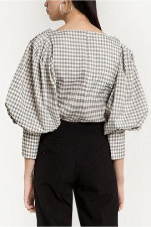 Timelessly Elegant Black-White Gingham Puff Sleeve Blouse