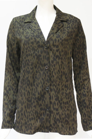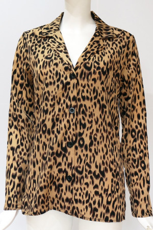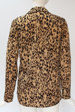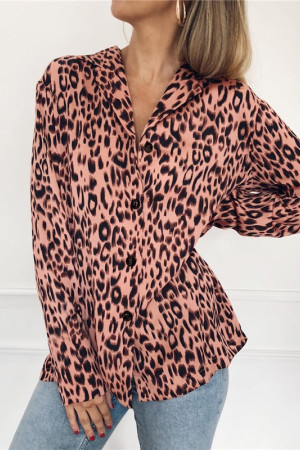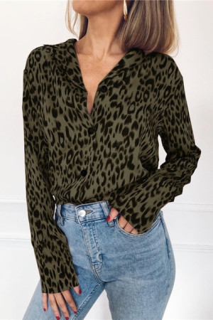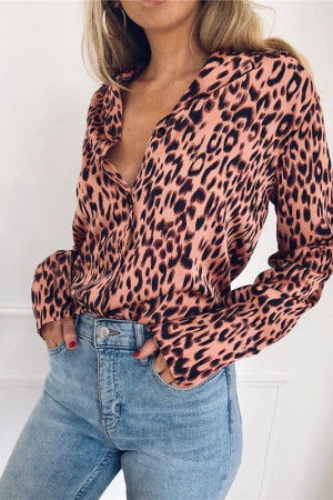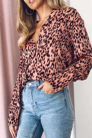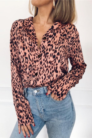 This casual leopard blouse is made of polyester chiffon fabric and features appliques, a turn-down collar, full-length sleeves, and a regular fit. It is perfect for the spring and summer seasons and is sure to make a statement.
