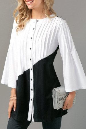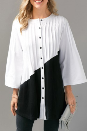 Elevate Your Look with a Stylish Button Up Pintuck Color Block Blouse