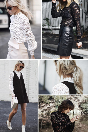 This is a stylish and elegant streetwear piece for autumn. It is made of a combination of polyester and spandex, with a regular length. The fabric type is lace, and the pattern type is patchwork. It features a full length lantern sleeve, an O-neck collar, and is decorated with embroidery.
