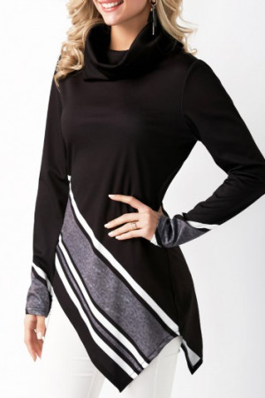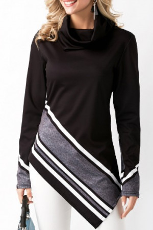 Elegant Asymmetric High Neck Blouse with Flattering Hemline