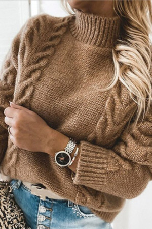 Cozy Comfort: Solid Twist Long Sleeve Knitted Sweaters for Autumn/Winter
