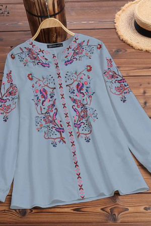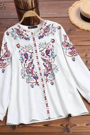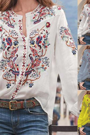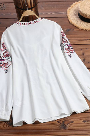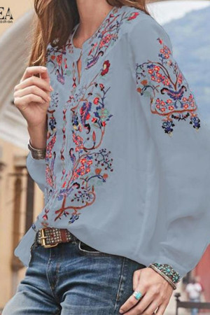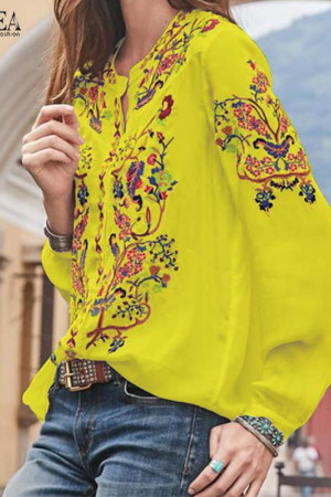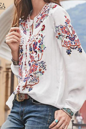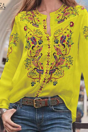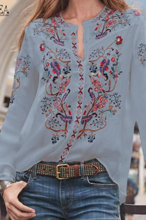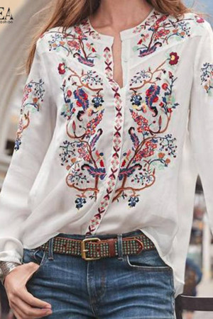 Bohemian Plus Size Tunic Neck Long Sleeve Shirts: The Perfect Autumn Blouse for Casual Style