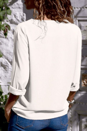 Elegant White Asymmetrical Neck Button Long Sleeve Blouse