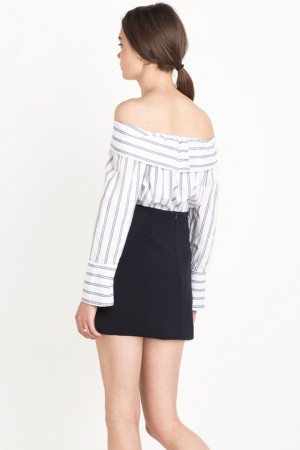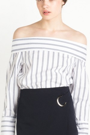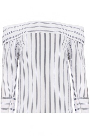 For an effortless finish to your style, look to this striped white blouse. This feminine piece features stripes, off shoulder and long sleeve. Team this hot piece with a black skirt and pointed heels for a fierce finish.