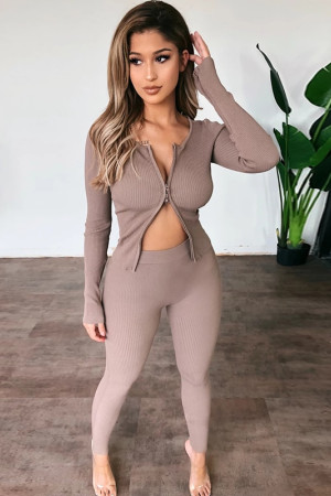 This summer set is a sexy two piece outfit perfect for club parties. It features a V-neck, solid pattern, full length sleeves, ankle-length pants, zipper closure, polyester material, and elastic waist. The style is sexy and club.