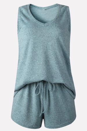 Summer Breeze: Light Blue Crochet V-Neck Drawstring Tank Top & Shorts Set