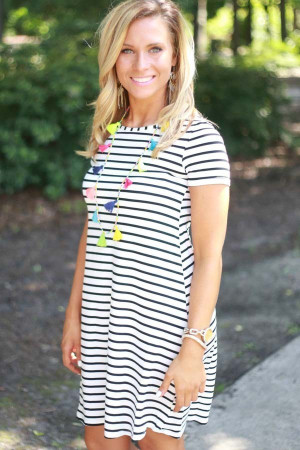 Effortless Style: Black Stripe Short Sleeve Tunic Dress