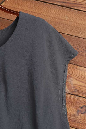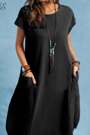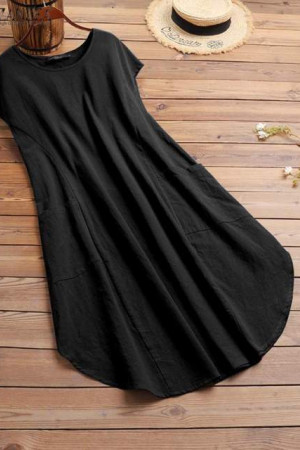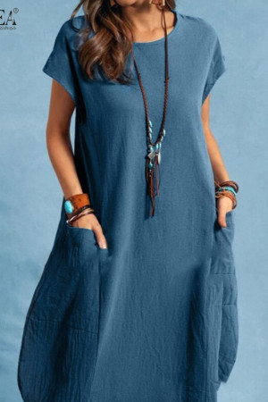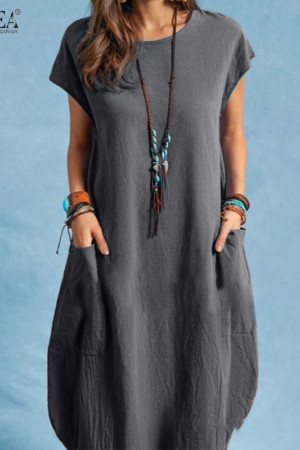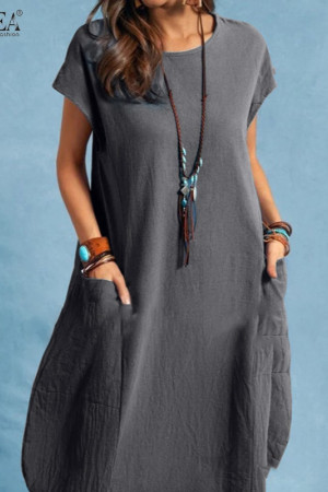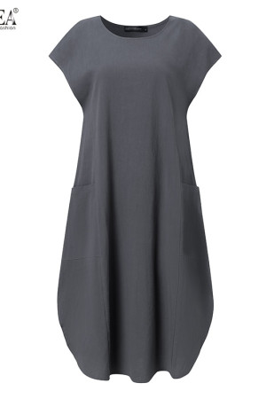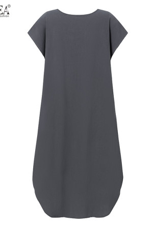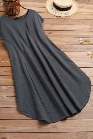 Oversized Vintage Summer Breeze: Short Sleeve Solid Sundress Kneelength Casual Loose Cotton...