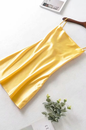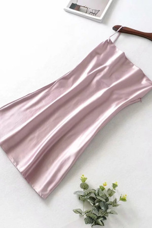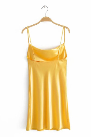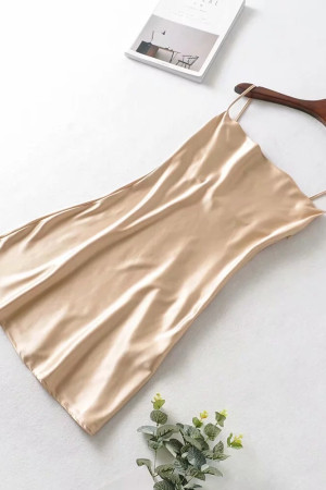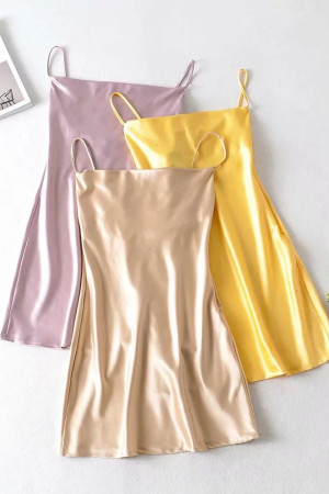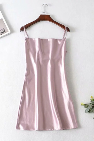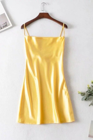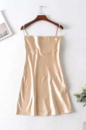 Vintage Elegance: Slash Collar Backless Bright Satin Spaghetti Strap Line Like Silk Short Base...