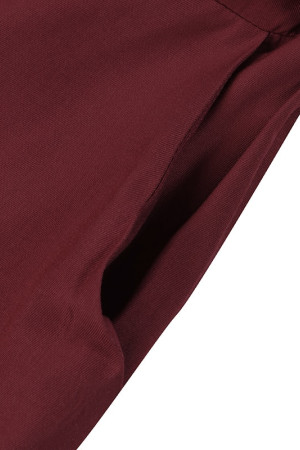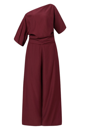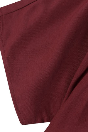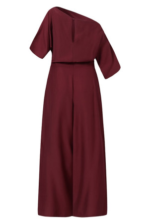 This jumpsuit is made of a blend of rayon and polyester, with a solid pattern and broadcloth fabric type. It is designed in an office lady style, with wide leg pants, regular fit, full length, and high waist type. It also features pockets as a decorative element.