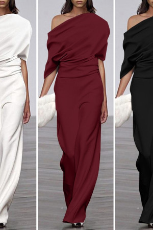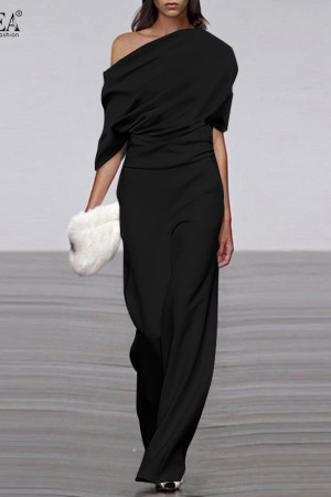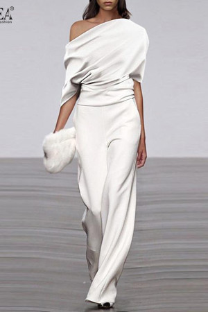Elegant Summer Off-Shoulder Wide-Leg Rompers: The Perfect Office Playsuit for Any Occasion