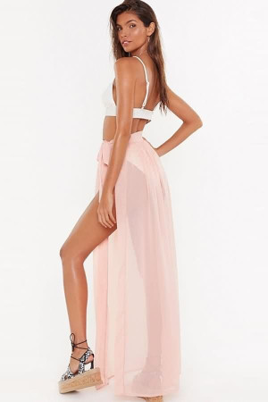 Pretty in Pink: Mesh Sheer Slit Maxi Beach Skirt Cover Up