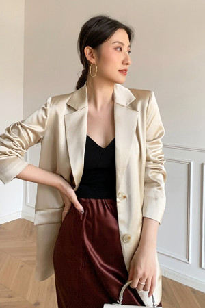 Sleek Satin Matte Blazer - Summer Women's Long Sleeve Thin Suit Jacket for Women