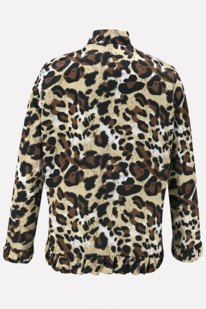 Women's Khaki Leopard Print Zipper Up Long Sleeve Casual Coat