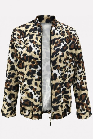 This casual coat features a khaki leopard print, a zipper up closure, and long sleeves. It is perfect for everyday wear and adds a stylish touch to any outfit.