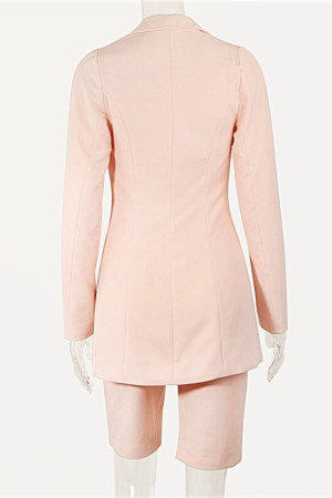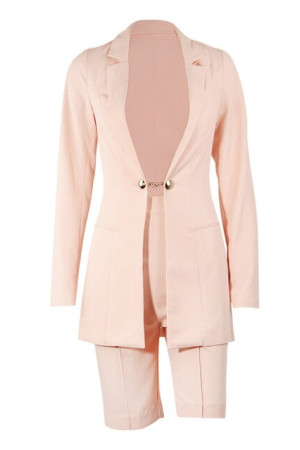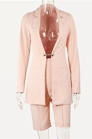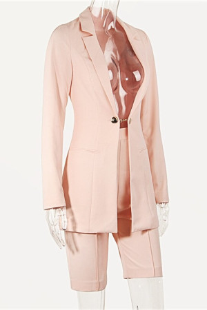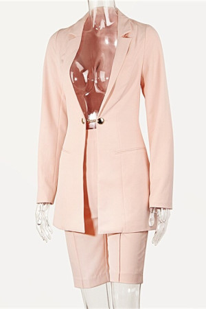 Autumn Office Chic: Notched Single Button Sets Long Sleeve Coat & Shorts Blazer Suits
