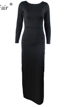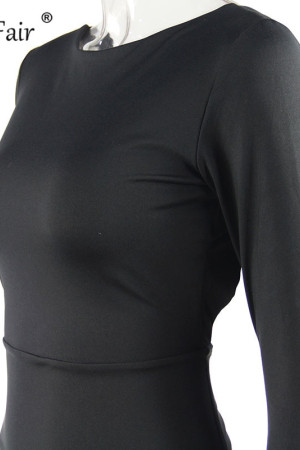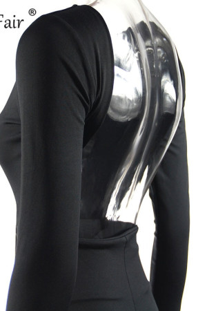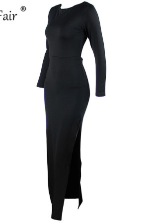Black Elegant Backless High Side Split Long Sleeve Dress