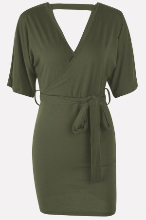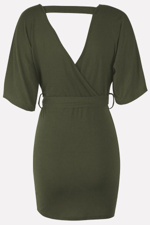 Army Green V-Neck Wrap-Tied Short Sleeve Bodycon Dress