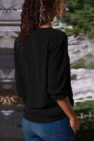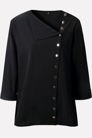 Elegant Black Asymmetrical Neck Button Long Sleeve Blouse