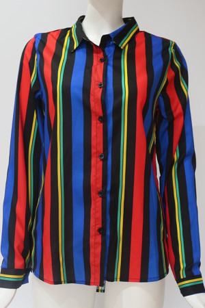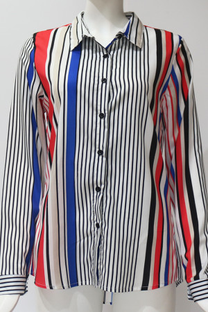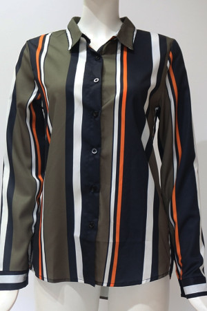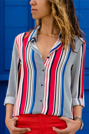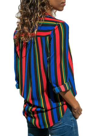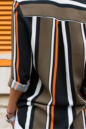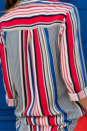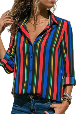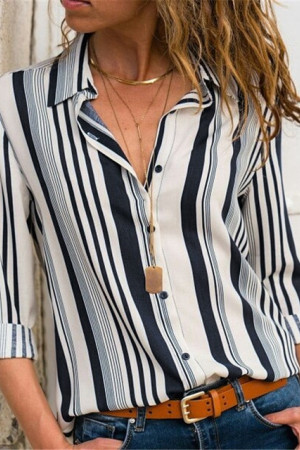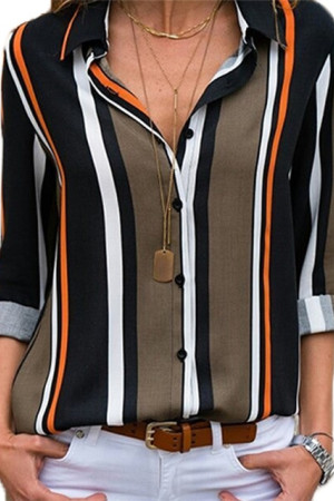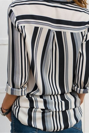 Long Sleeve Turn Down Collar Striped Chiffon Blouse