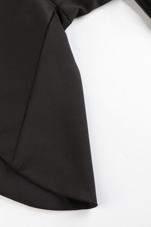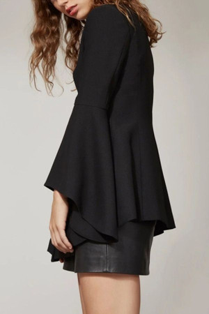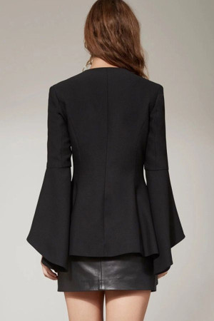 Elegant Black Plunging Blazer with Slit Side Flare Sleeves