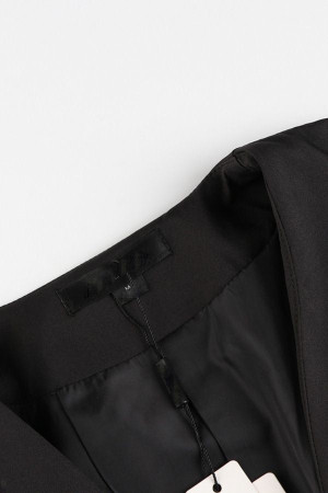 This chic blazer features a sleek black color, a single button closure, a side slit, and flare sleeves for a modern and stylish look. It is perfect for dressing up any outfit and will make a great addition to any wardrobe.