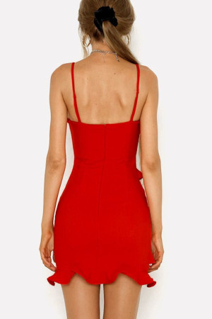 Flirty Red Ruffles: Spaghetti Strap Backless Casual Dress