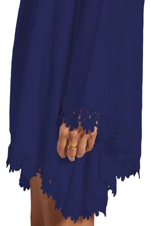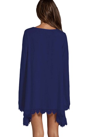 Chic Blue V-Neck Crochet Hem Long Sleeve Dress - Perfect for Casual Occasions