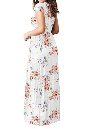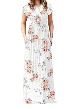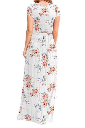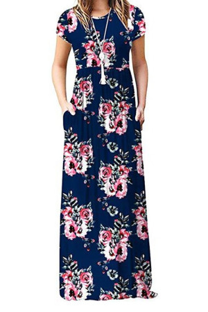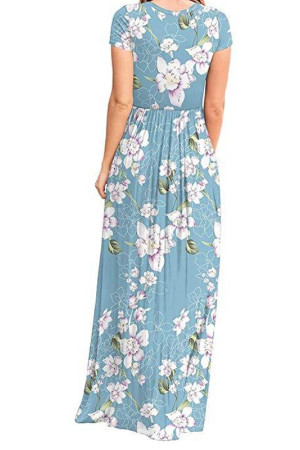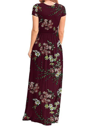 This summer bohemian fit and flare dress is made of a combination of cotton and polyester. It features a print pattern, a regular short sleeve, an O-neck, an empire waistline, and no decorations.