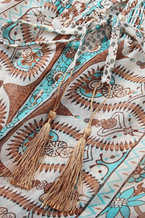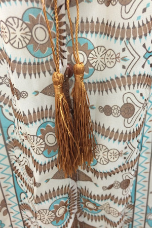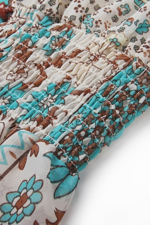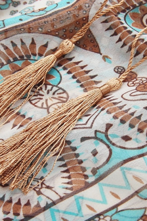 This summer dress features a bohemian style with a V-neck neckline, empire waistline, and lantern sleeves with three quarter length and tassel decoration. It is made of high quality chiffon and polyester with a fit and flare silhouette and a floral print pattern. This European, Bohemia, Casual, and Party dress is perfect for any occasion.