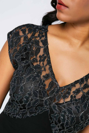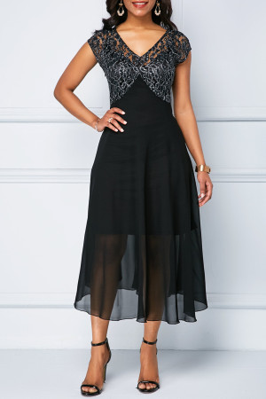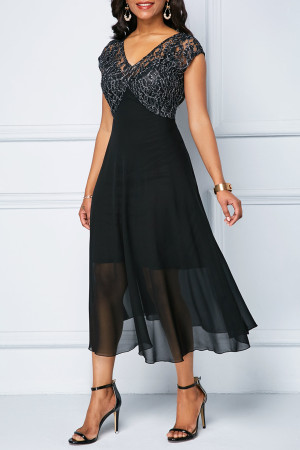 Elegant Cap Sleeve Lace Patchwork Chiffon Dress