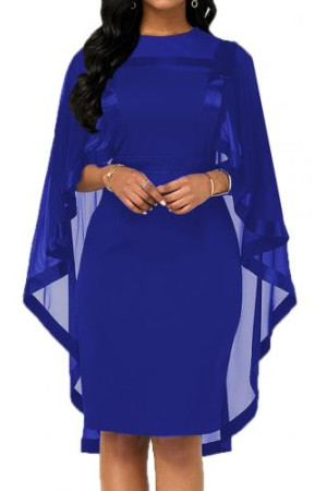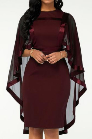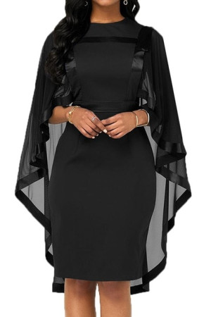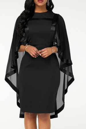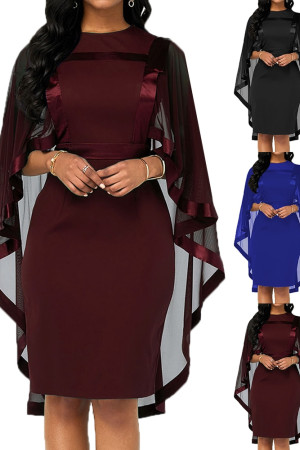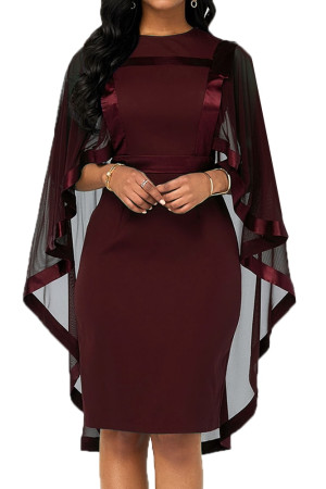 Elegant Cape Slim Fit Round Collar Cocktail Banquet Bodycon Dress