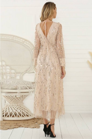 Glamorous Apricot Sequin Mesh V-Neck Midi Dress