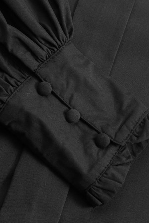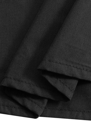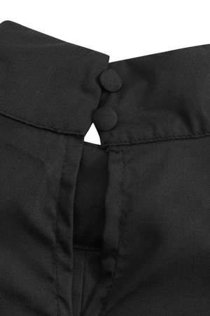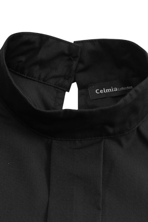 This casual shirt is made of a blend of cotton and polyester, with a regular length and a stand collar. It features lantern sleeves, a button decoration, and a solid pattern type. It is suitable for all seasons and occasions, from casual to party to office.