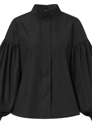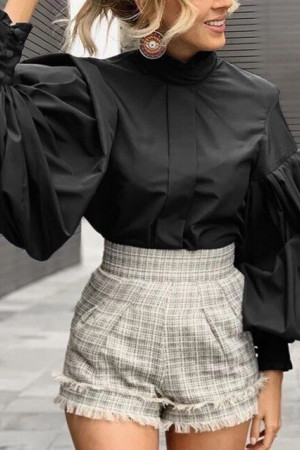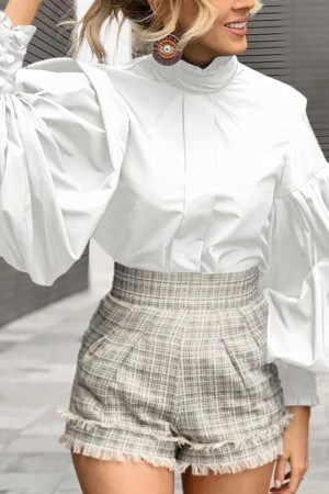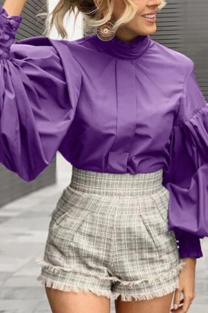 Vintage Office Elegance: Big Lantern Sleeve Blouses Stand Collar Shirts Solid Tops Casual