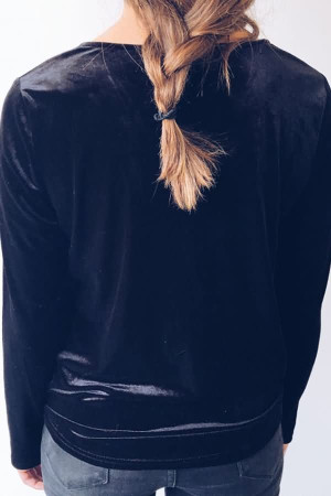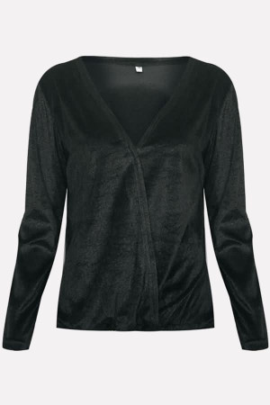 Elegant Black Velvet V-Neck Wrap Long Sleeve Top for Casual Occasions