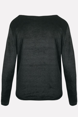 This black velvet wrap top is a stylish and comfortable choice for casual wear. It features a V neckline, long sleeves, and a wrap design that ties at the waist for a flattering fit. The soft velvet fabric adds a touch of luxury to any outfit.