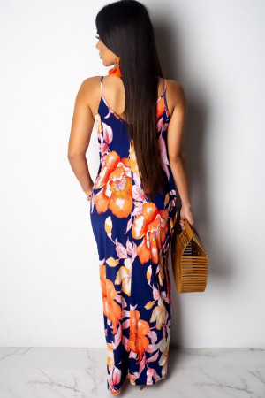 Effortless Elegance: Blue Leaf Spaghetti Strap Loose Casual Maxi Dress