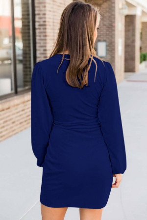 Royal Navy Soft Tulip Dress: Dark Blue Velour Wrap Long Sleeve Casual Style