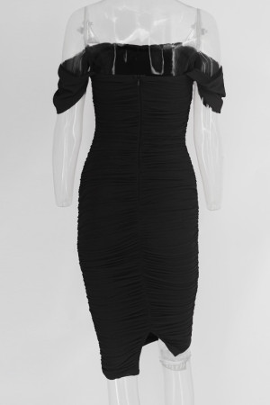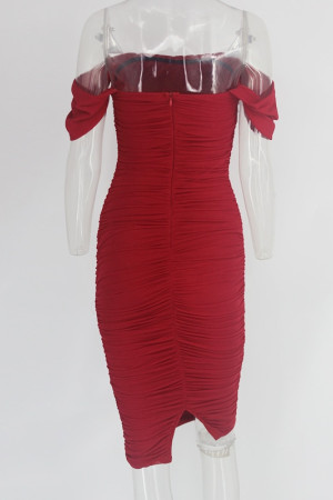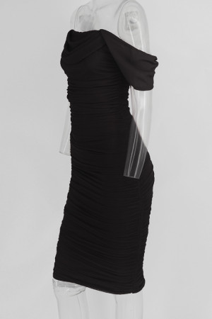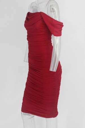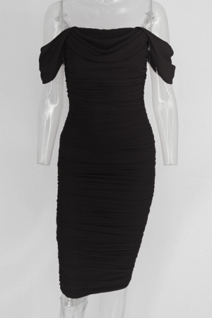 This sexy and stylish dress is perfect for summer. It is made of polyester and features a draped waistline, a sheath silhouette, and a strapless neckline. The dress is sleeveless and features a solid pattern type with an off the shoulder sleeve style. It is a bodycon dress that is perfect for a night out or for the office.