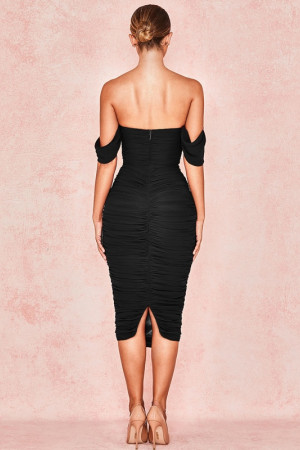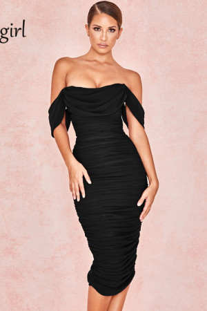 Sophisticated Summer: Off-the-Shoulder Backless Bodycon Midi Dress