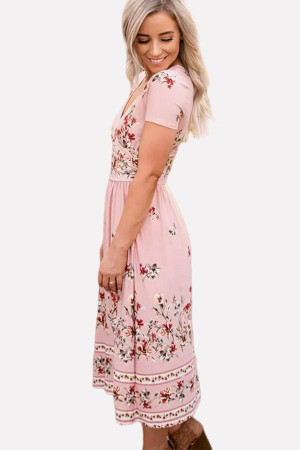 Pretty in Pink Floral: Casual Midi A Line Dress with Pockets