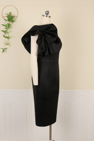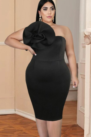 This plus size women dress is made of polyester, spandex, and assorted materials. It features a patchwork pattern, an empire waistline, a sheath silhouette, a strapless neckline, and regular short sleeves. It is perfect for any occasion, including Christmas, New Year, daily parties, spring, summer, autumn, and winter. It is decorated with appliques and is available in plus sizes.