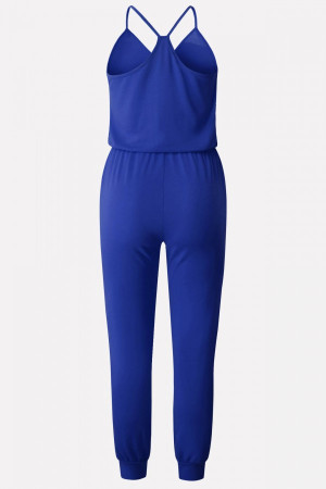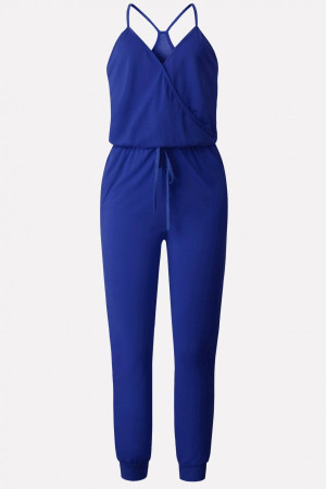 This casual jumpsuit features a spaghetti strap v-neckline with a drawstring waist and a relaxed fit. It is perfect for a casual day out or a night out with friends. It is comfortable and stylish, making it a great addition to any wardrobe.