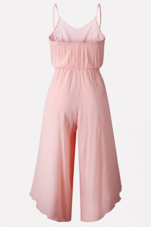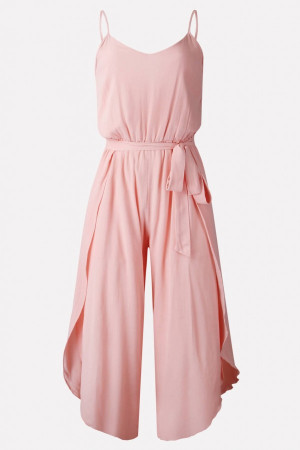 Pretty Pink Spaghetti Strap Slit Jumpsuit - Perfect for Casual Wear