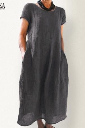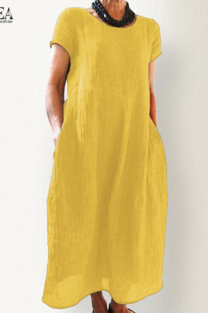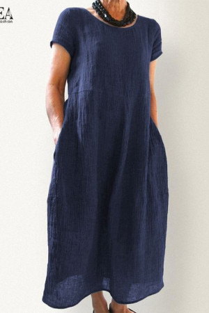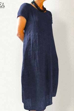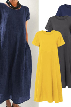 This is a casual, loose-fitting dress made of cotton with solid pattern, short sleeves, pockets, regular sleeve style, empire waistline, and O-neck. It is suitable for work, casual, streetwear, party, and holiday occasions in the spring, summer, and autumn seasons. It is also a great party dress for women, plus size women dresses.