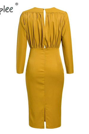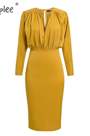 Elegant Autumn Office Look: Neck Bodycon Batwing Sleeve Mermaid Dress