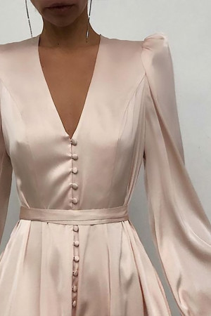 This sexy and stylish dress is perfect for the spring and autumn seasons. It features a V-neck, full length lantern sleeves, and an A-line silhouette. The dress is made of a combination of cotton and polyester, and is decorated with buttons. The waistline is empire and the pattern is solid. This dress is sure to make a statement with its unique lantern sleeve and sexy V-neck.