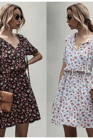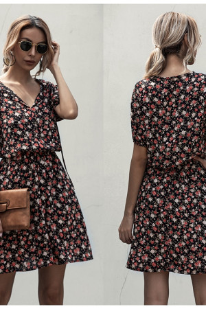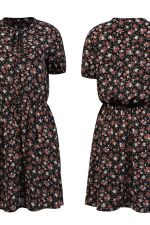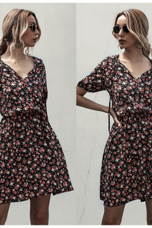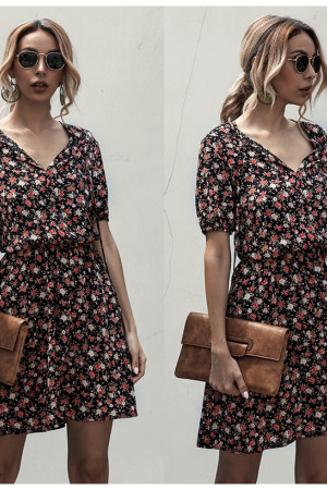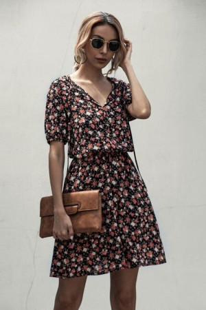 Vintage Summertime Charm: Black Floral Retro Mini Dress